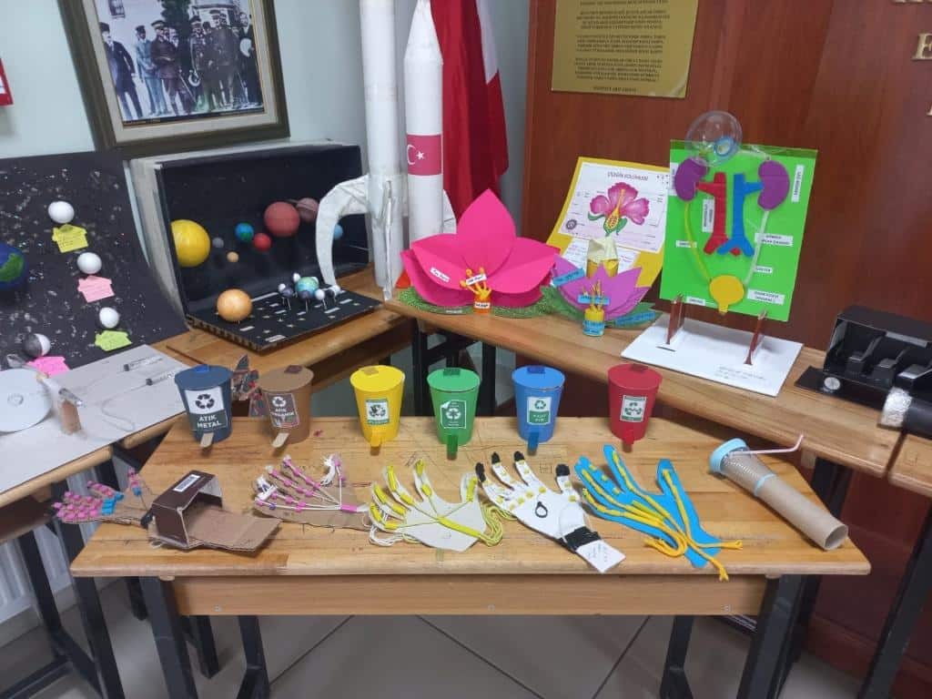 STEM Ürünleri Sergisi Bilim ve Yaratıcılığı Buluşturdu Şehit Bülent Gider Ortaokulu’nda yıl boyunca yürütülen STEM (Bilim, Teknoloji, Mühendislik ve Matematik) temelli çalışmalar, düzenlenen "Yıl Sonu STEM Ürünleri Sergisi" ile okul topluluğunun beğenisine sunuldu. Sergide öğrencilerin fen bilimleri derslerinde edindikleri bilgi ve becerileri kullanarak hazırladığı yaratıcı projeler yer aldı. Etkinlik kapsamında farklı sınıf düzeylerinden öğrenciler; basit makineler, elektrik devreleri, doğal afetlere karşı dayanıklı yapı tasarımları, geri dönüşüm temalı teknolojik araçlar ve çevre dostu enerji çözümleri gibi pek çok dikkat çekici proje geliştirdi. Projelerde öğrencilerin hem bilimsel süreç becerilerini hem de günlük yaşam problemlerine çözüm üretme yeteneklerini etkili şekilde kullandıkları gözlemlendi. Sergi boyunca öğrenciler projelerini ziyaretçilere tanıtarak hem sunum becerilerini geliştirdi hem de bilimsel düşüncelerini ifade etme fırsatı buldu. STEM Ürünleri Sergisi, bilimsel merakı destekleyen, üretkenliği teşvik eden ve öğrenci merkezli öğrenmeyi ön plana çıkaran yapısıyla büyük beğeni topladı. Okul olarak, öğrencilerin hayal gücünü gerçeğe dönüştürdükleri bu tür çalışmalara önümüzdeki yıllarda da devam edilecektir.